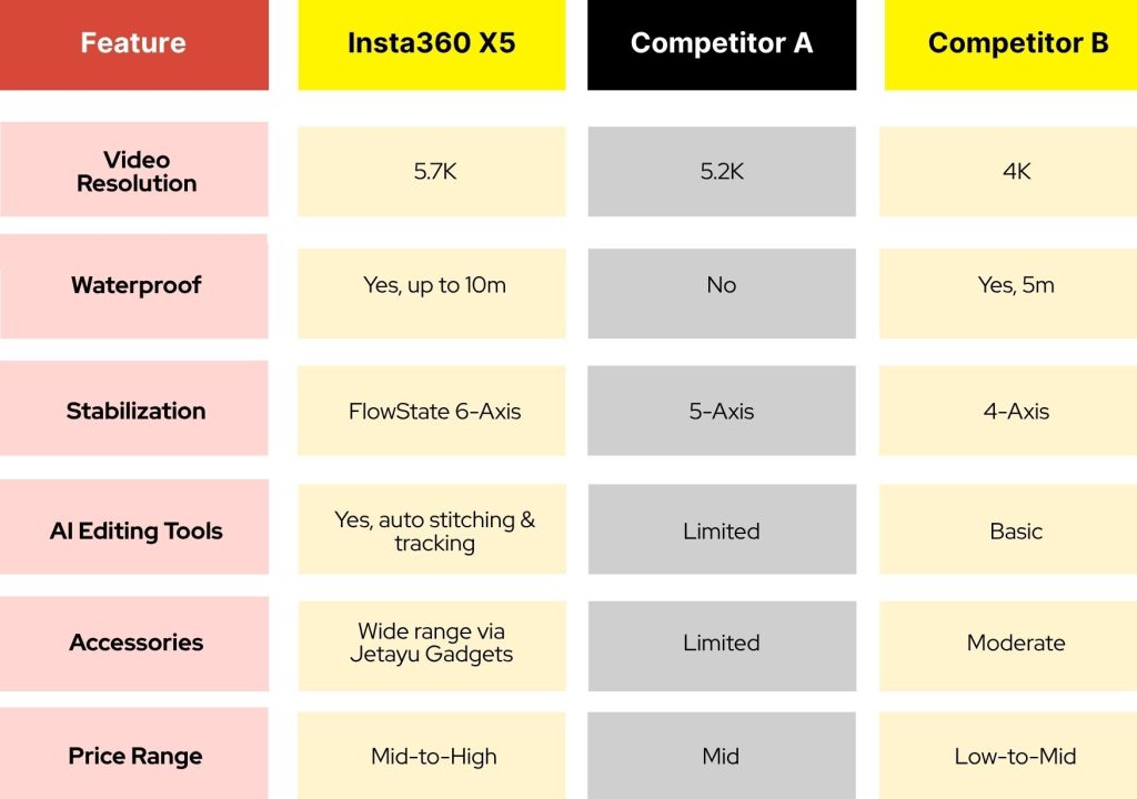 When choosing a 360-degree camera, understanding how the Insta360 X5 compares to other models helps you make an informed decision. While several brands offer high-quality 360 cameras, the X5 stands out in terms of versatility, image quality, and creator-focused features.