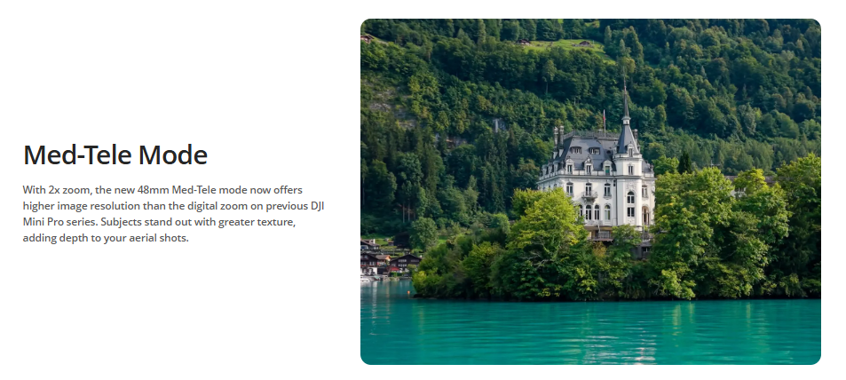 48mm Telephoto Mode: Capture cinematic perspectives with in-camera zoom