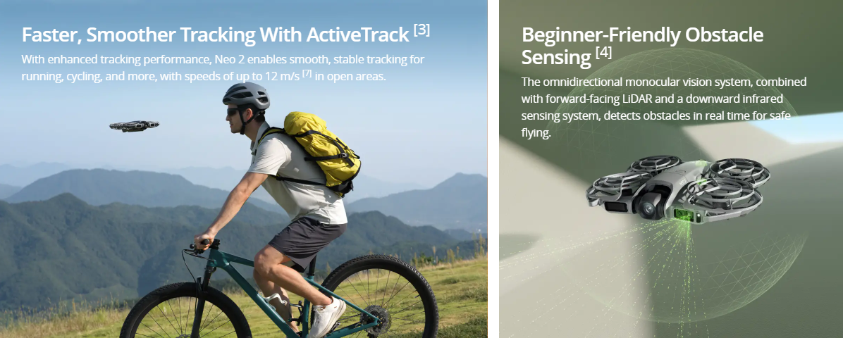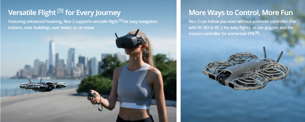 With enhanced GPS precision and propeller protection, the DJI Neo 2 ensures a safe and worry-free flying experience.